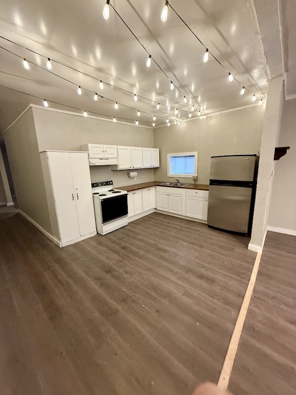 This beautifully refreshed rental featuring an open-concept layout, warm modern finishes, and tons of natural light. The expansive living area offers flexible space for relaxing. Enjoy the comfort and privacy of our newly updated 3-bedroom, 1-bath duplex homes, offering a quiet and convenient place to settle in.